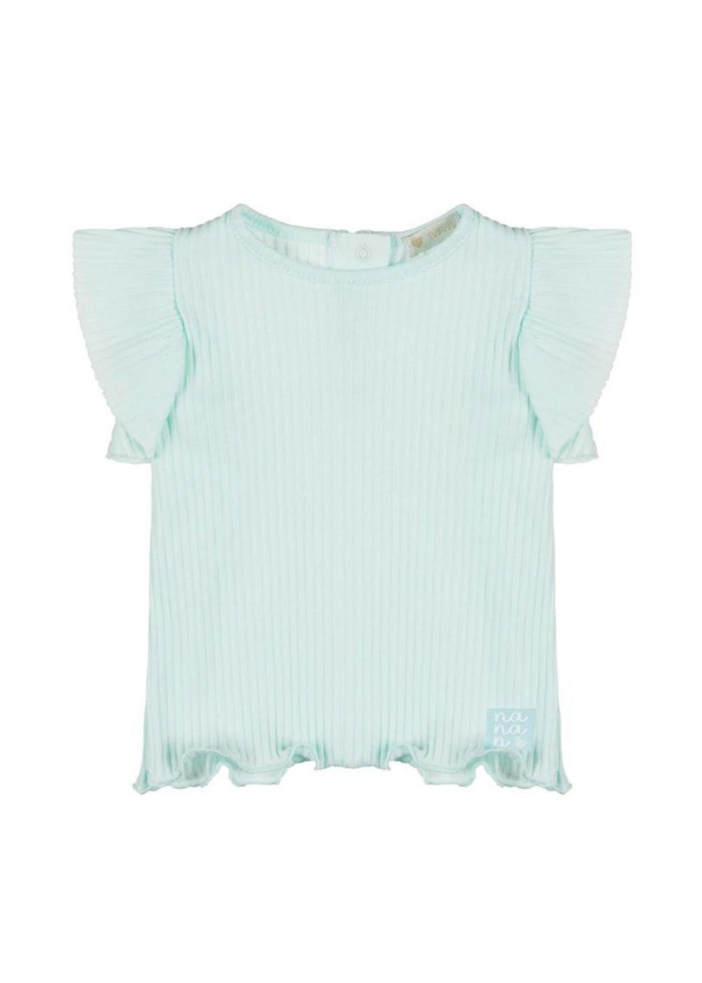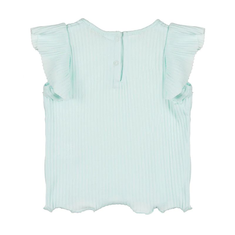 T-shirt in 100% cotone, con trama a costine, impreziosita da graziose rouches sulle spalle.