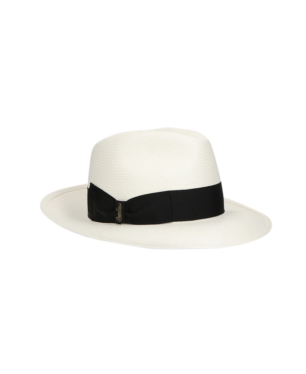 Panama extra fine in rafia tesa larga con fiocco nero firmato Borsalino