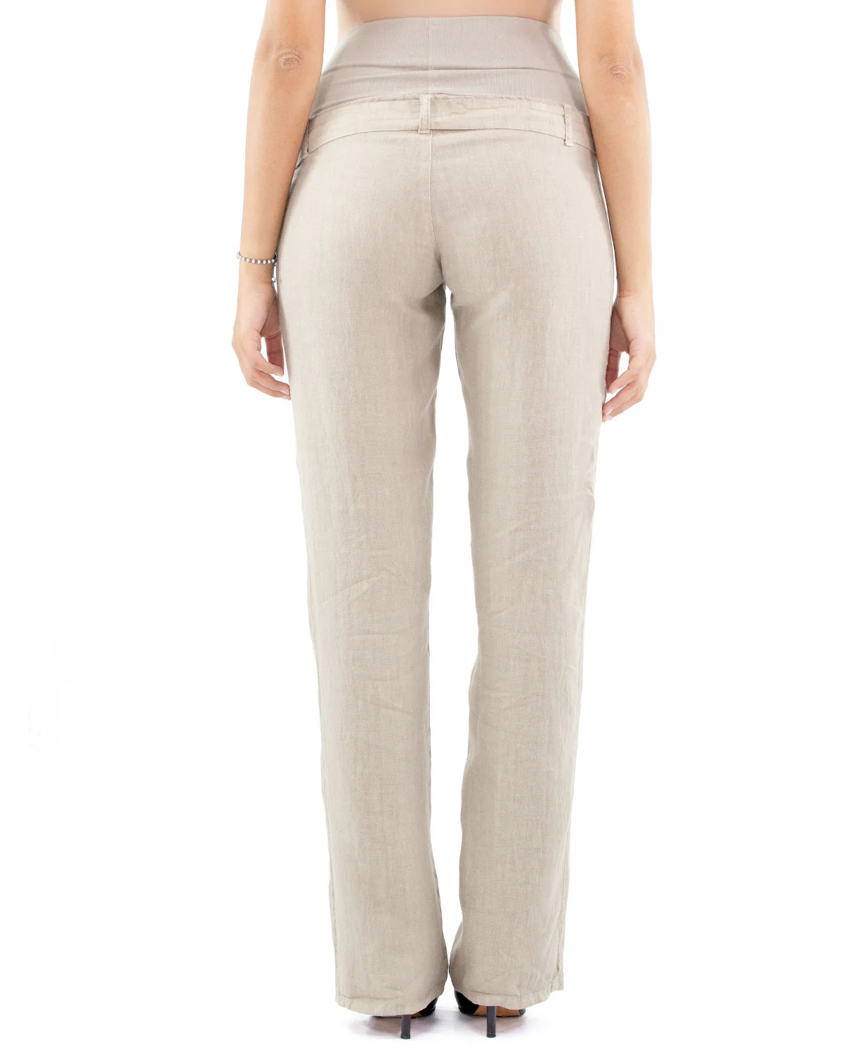 ll lino è una fibra naturale a trama larga, per sua caratteristica traspirante e fresca. Il meglio che puoi chiedere dai pantaloni premaman estivi.