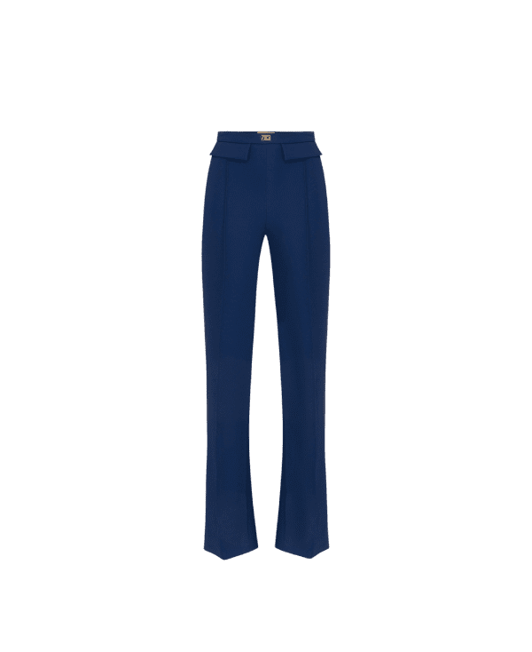 Pantaloni in crêpe stretch con patte sul davanti e nervature.