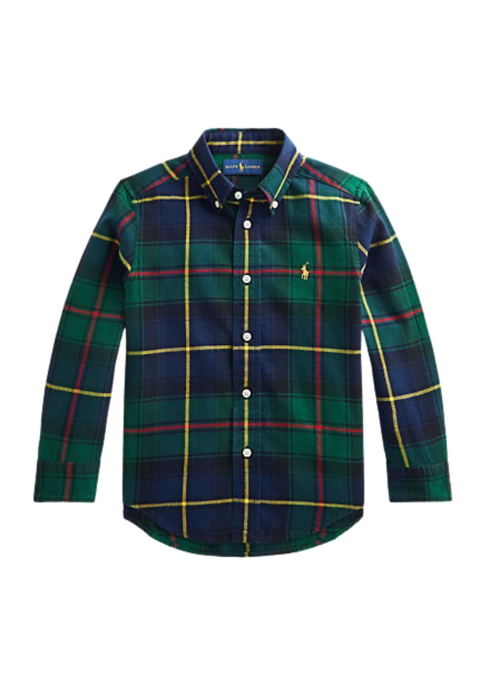 Questa camicia in flanella sfoggia un vivace motivo scozzese e il nostro caratteristico pony ricamato sul lato sinistro del torace.