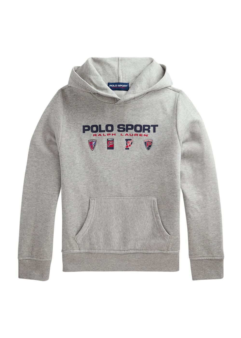 Questa felpa in misto cotone con cappuccio presenta il logo e quattro emblemi vintage di Polo Sport, tra cui l’iconica grafica P-Wing.