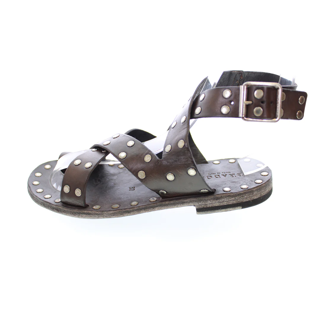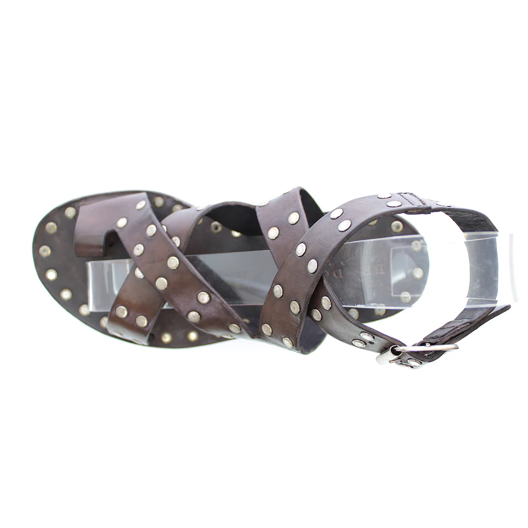 L’aspetto vintage è il risultato della nostra speciale lavorazione T/CAPO Brador che conferisce unicità al sandalo. L’utilizzo di tinture e cere a mano rende ogni calzatura unica e irripetibile così che ogni cliente possa indossare una piccola opera d’arte ai piedi.