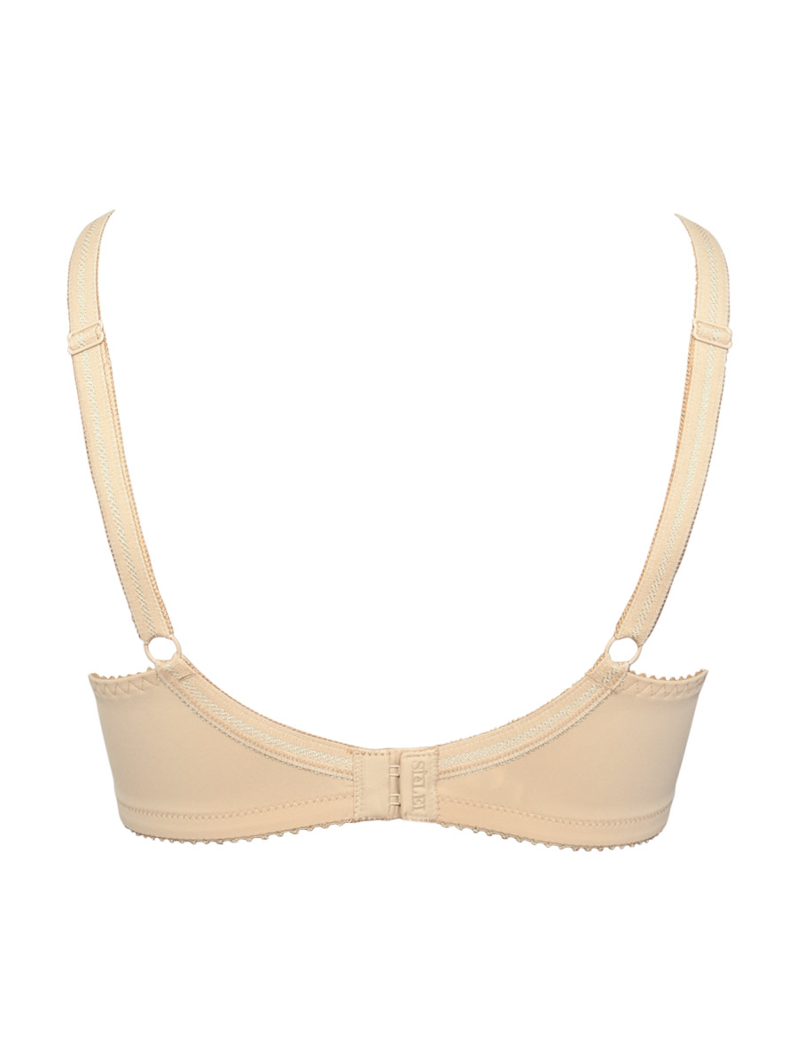 Le coppe doppiate internamente in cotone garantiscono una sensazione di morbidezza a contatto con la pelle, ideale anche per le giornate più lunghe. Il ferretto fornisce un sostegno efficace, mantenendo il seno in posizione e donando una silhouette armoniosa. Le spalline regolabili permettono una personalizzazione totale della vestibilità.
