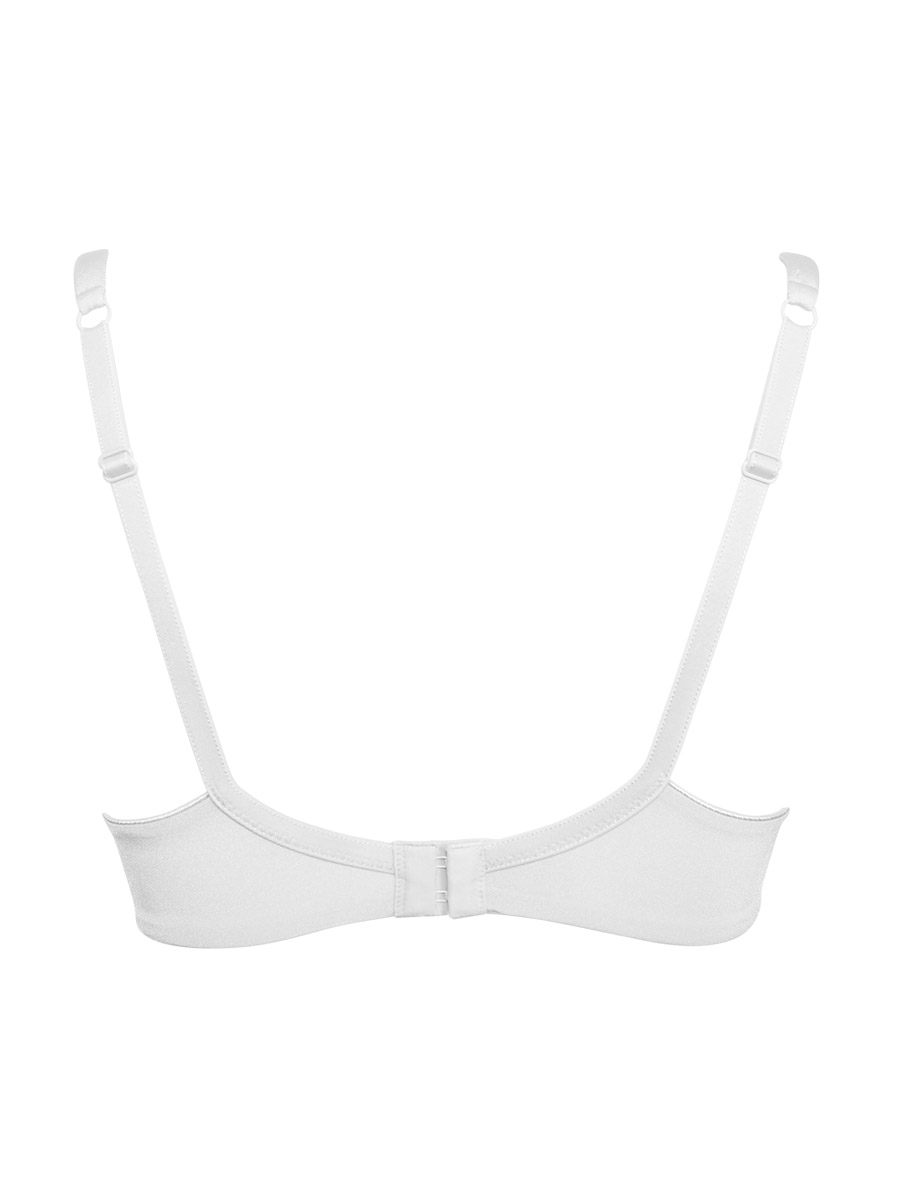 Le spalline larghe e imbottite assicurano una distribuzione equilibrata del peso, evitando fastidi sulle spalle. La presenza del regolatore supplementare e del ferretto integrato offre ulteriore stabilità e supporto, rendendo questo reggiseno ideale anche per chi ha un seno più generoso.