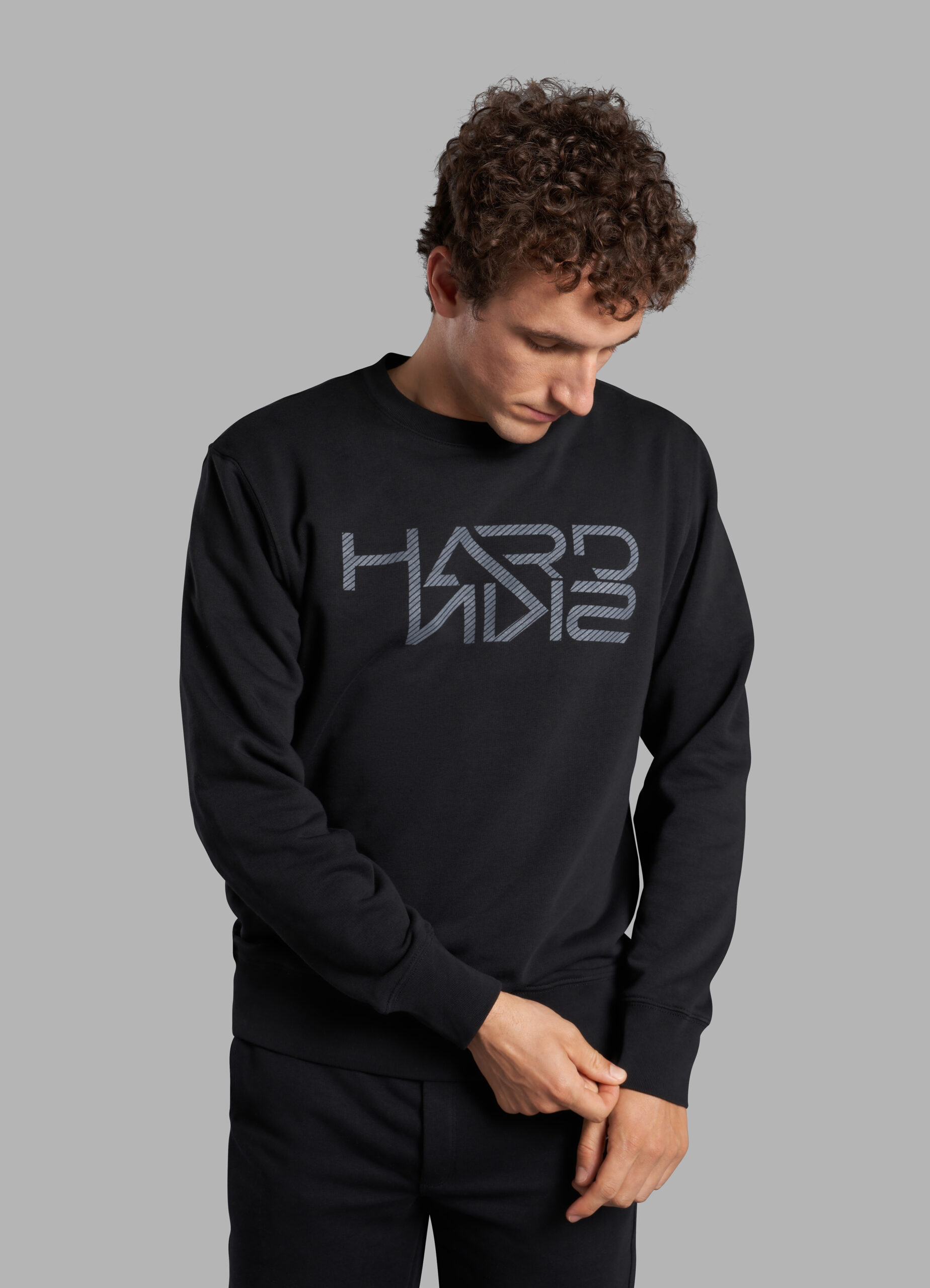 La nuova felpa di cotone 100% biologico brandizzata Hardskin, con la scritta Hardskin “specchiata” sul petto è perfetta per il tuo nuovo look.