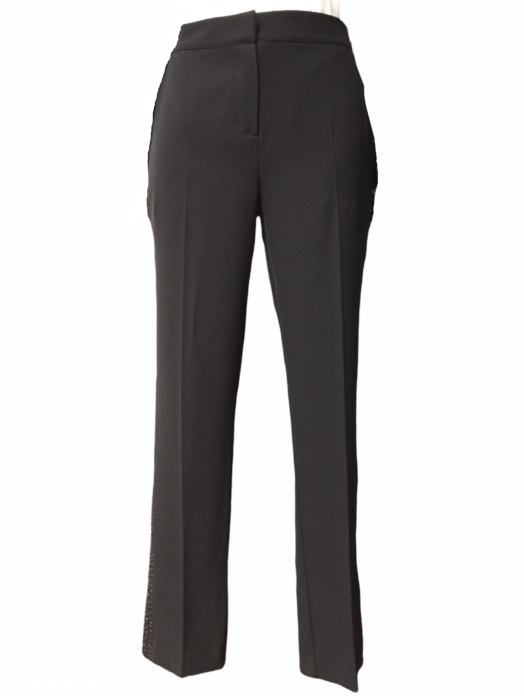 PANTALONE A SIGARETTA TASCHE, BANDA LATERALE DI STASS TONO SU TONO, CHIUSURA CON ZIP, BOTTONE E GANCIO NASCOSTO.