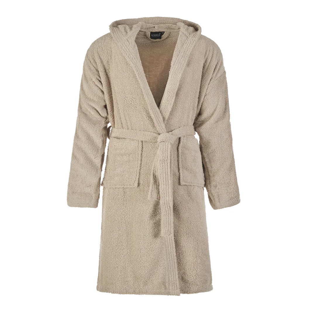Il design dell’accappatoio VINGI in spugna 100% cotone è studiato per offrire praticità e comfort senza rinunciare all’estetica. Il cappuccio ampio avvolge delicatamente, contribuendo a trattenere il calore e ad aumentare la sensazione di protezione, mentre la cintura coordinata consente una regolazione semplice e naturale della vestibilità.